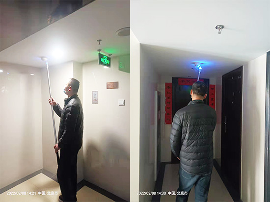 一名消防檢測檢查員一名助手操作消防控制室的主機,其他檢查員和助手前往現(xiàn)場進行檢查;雙方通過對講機消防電話聯(lián)系;一方面,熟悉現(xiàn)場情況,各消防設備的安裝和功能,另一方面,測試各區(qū)域的火災報警探測器。